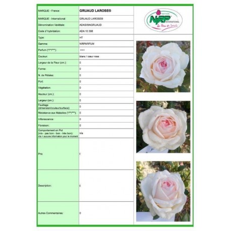 Le rosier Gruand Larose est un rosier à grandes fleurs blanc/rose clair d'un port élégant régulier et bien trapu. Rose romantique TRES PARFUMEE !